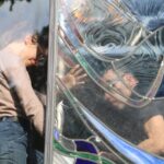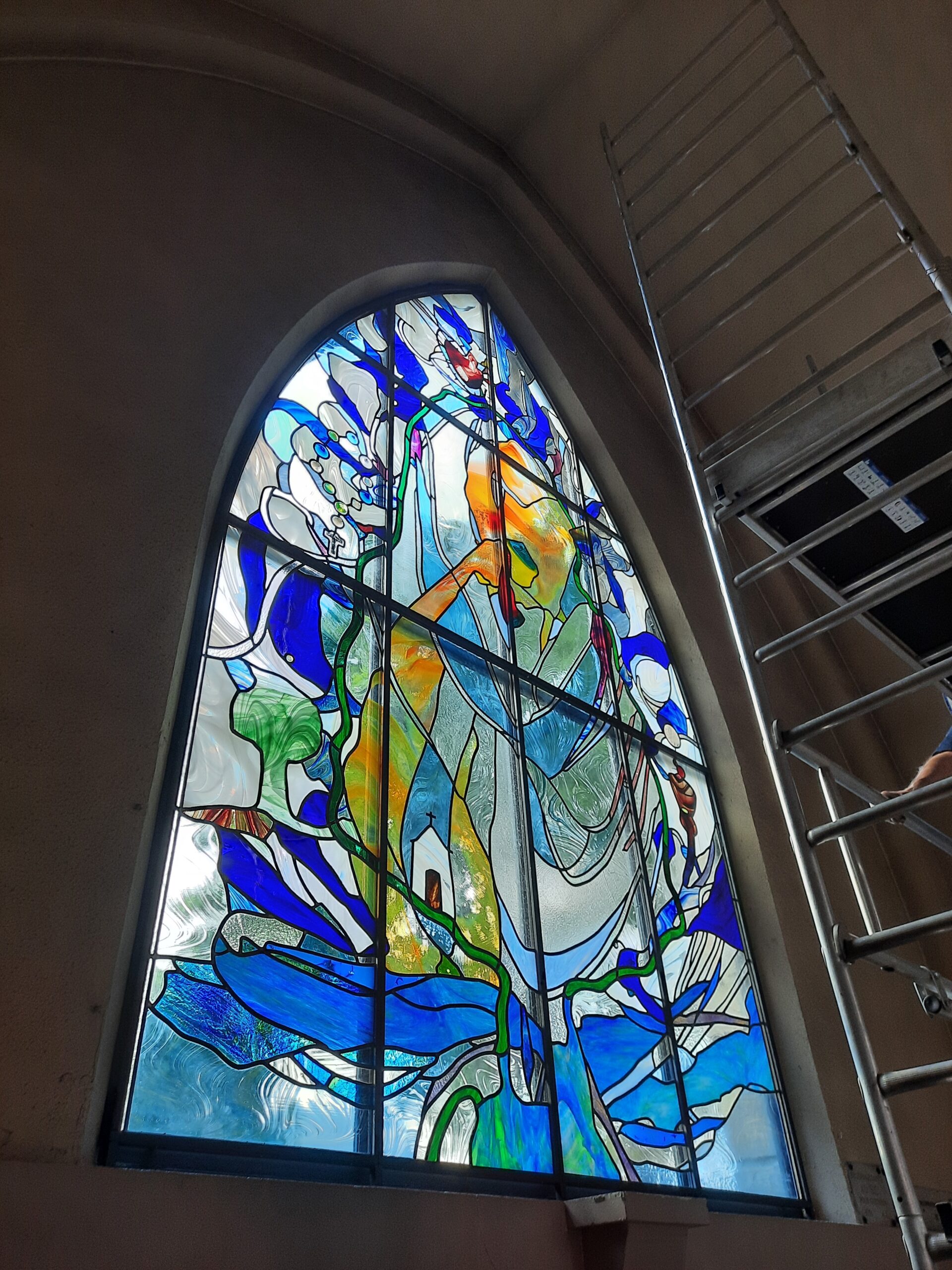 Chantier création d’une baie vitrail dans l’église de Saint-François de Sales à Clamart (92). Création en collaboration avec l’artiste Gilles AUDOUX.