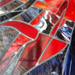Chantier création d’un grand vitrail pour une véranda chez un particulier à Bièvres (91), création en collaboration avec l’artiste Gilles AUDOUX.