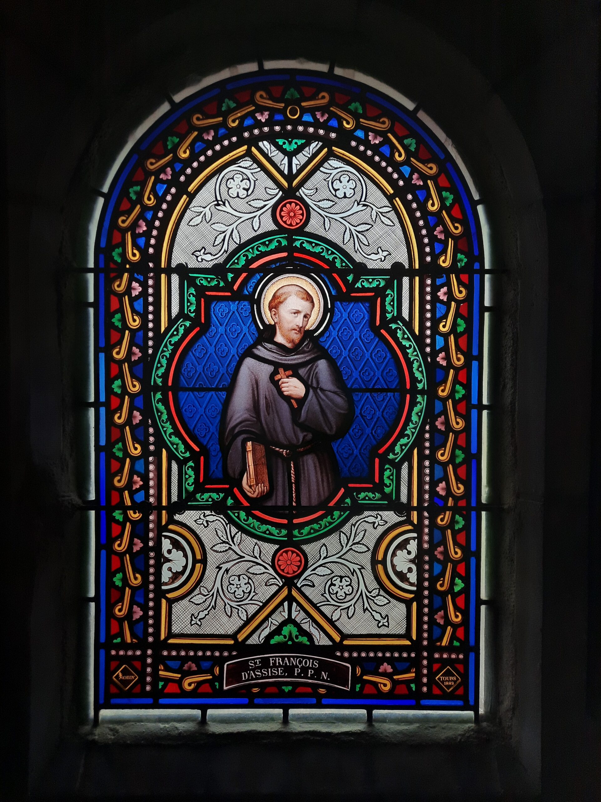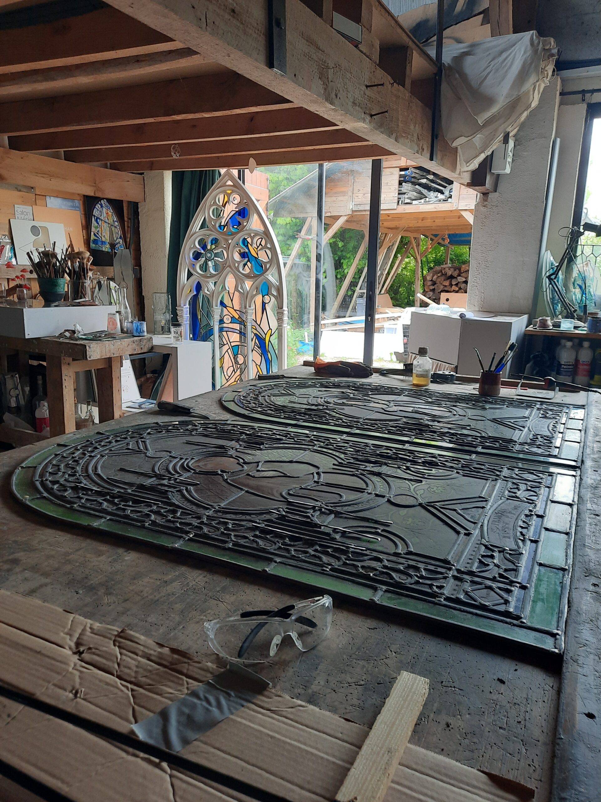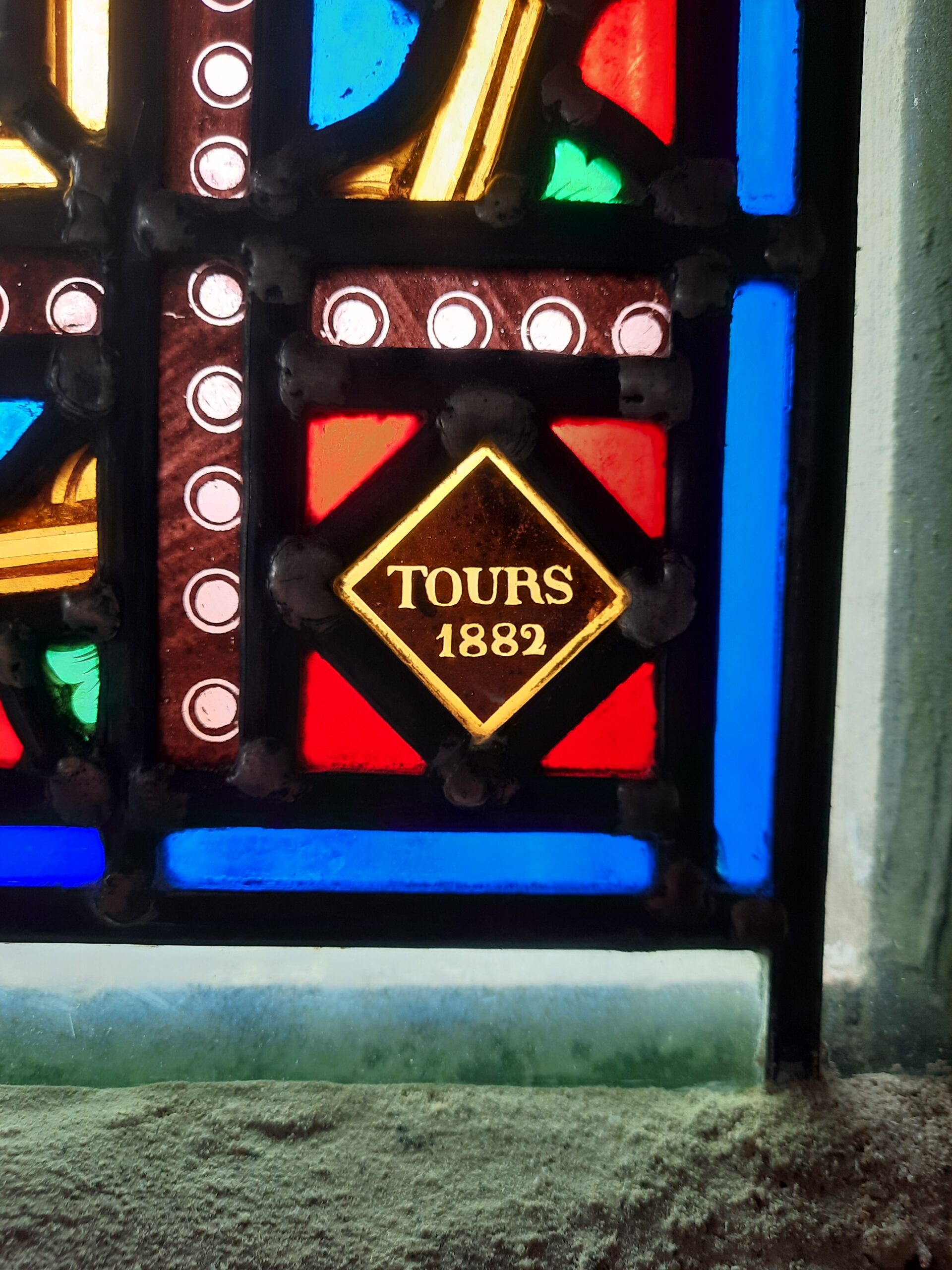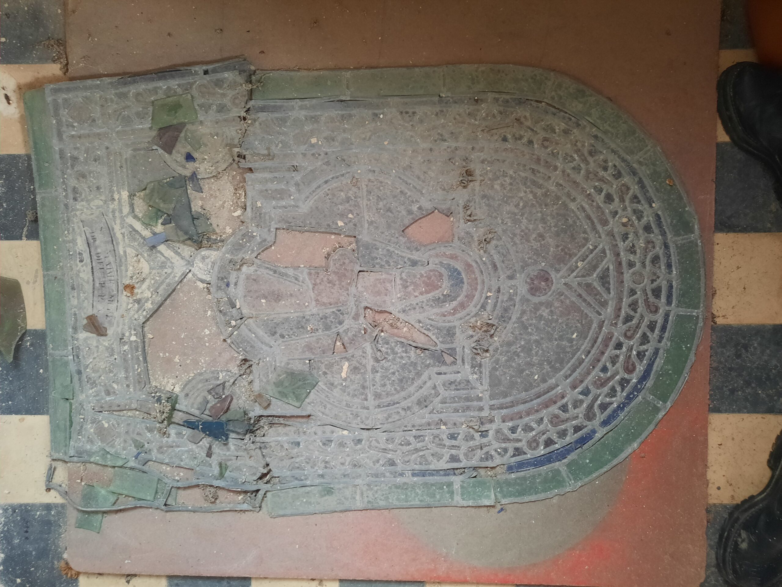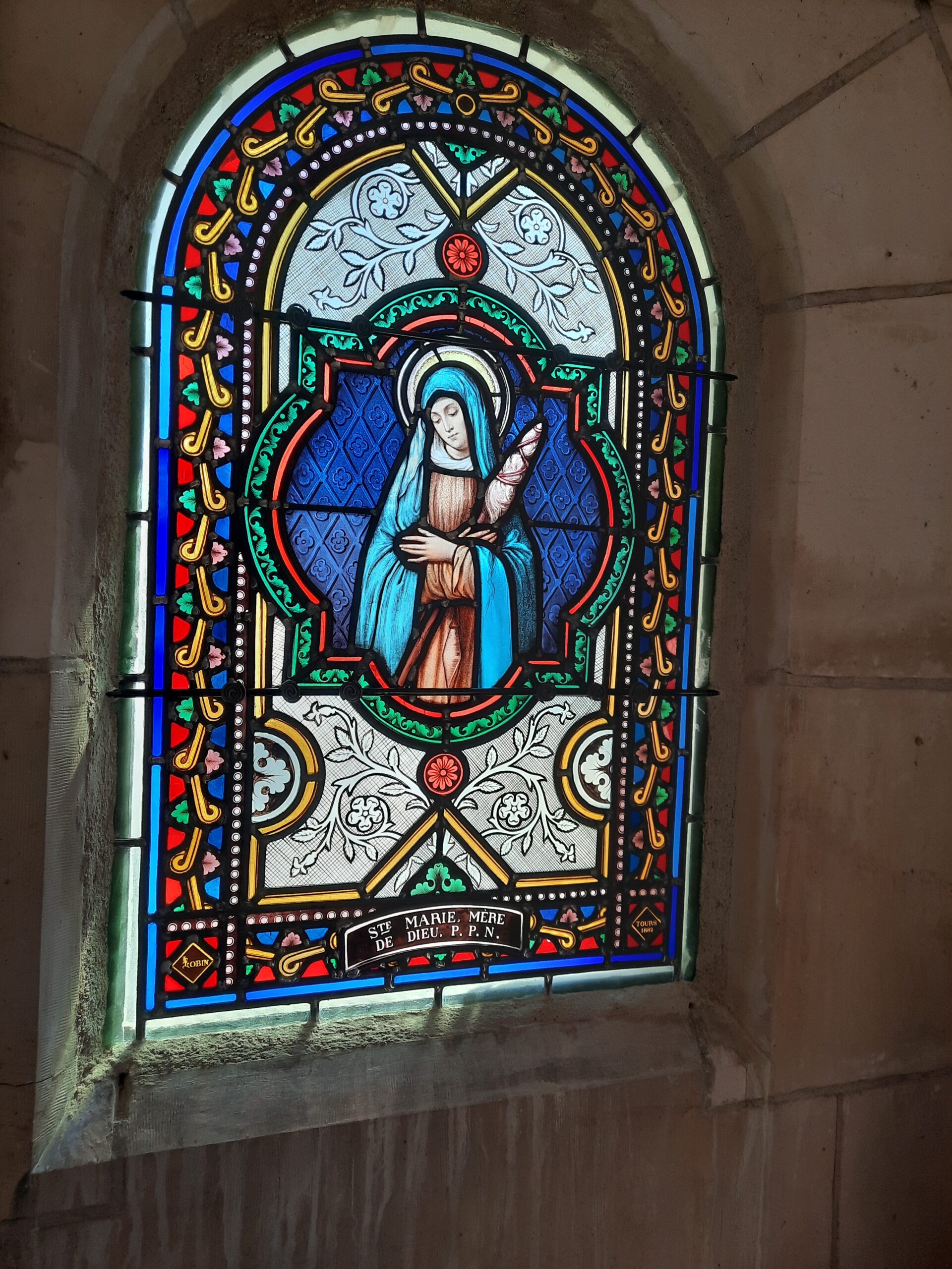 Restauration de vitraux datant du 19ème siècle dans une chapelle funéraire, située dans le cimetière de Vineuil (41).